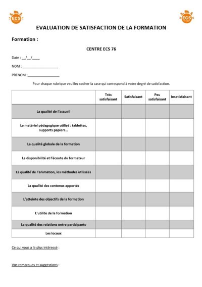 1. L'évaluation de satisfaction est systématiquement proposée, sous forme papier dans la grande majorité des cas. Donc en présentiel.